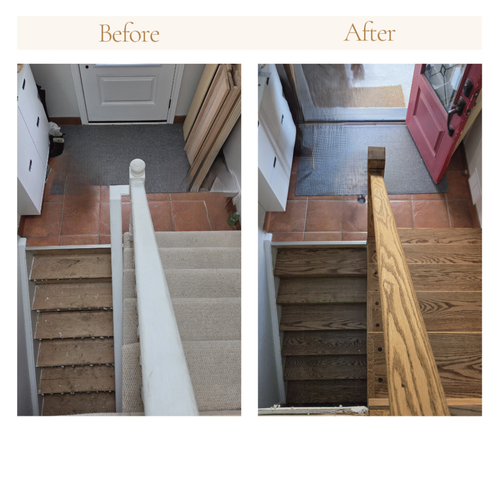 We refinish staircases top to bottom—sanding treads and risers, repairing damage, staining in your preferred colour and applying a durable finish.